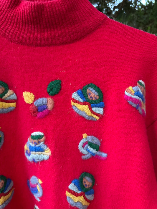Sold out90s Red Embroidered Babushka Sweater
